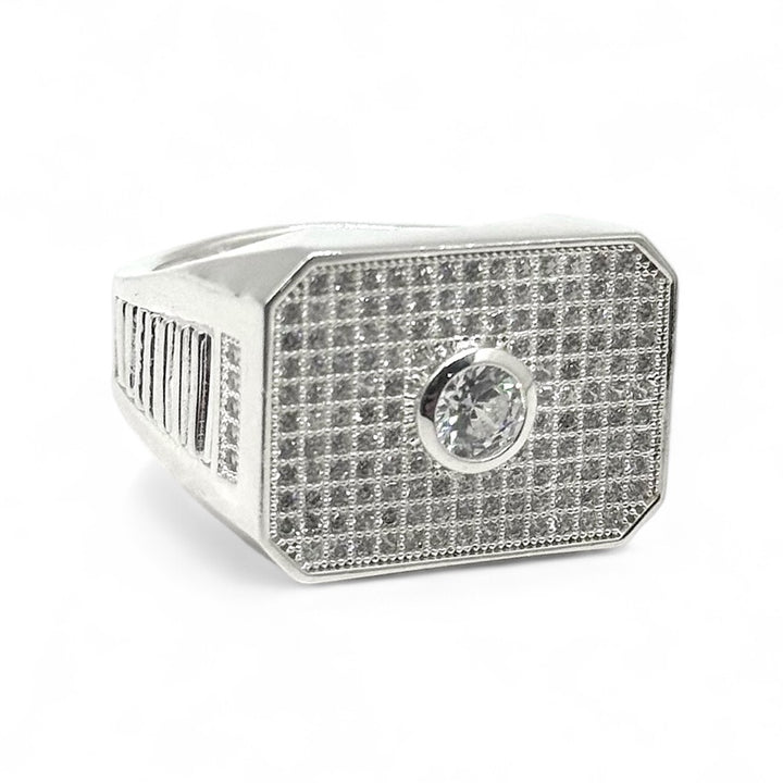 Frente octagonal con pavé total y diamante central, una joya que grita lujo contemporáneo. Diseñado para quienes buscan minimalismo con carácter y estilo icónico.