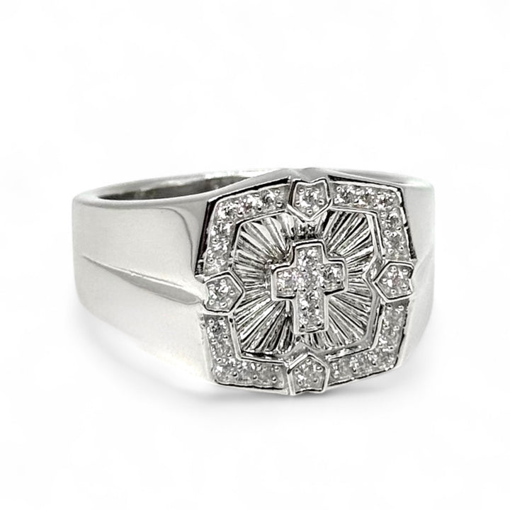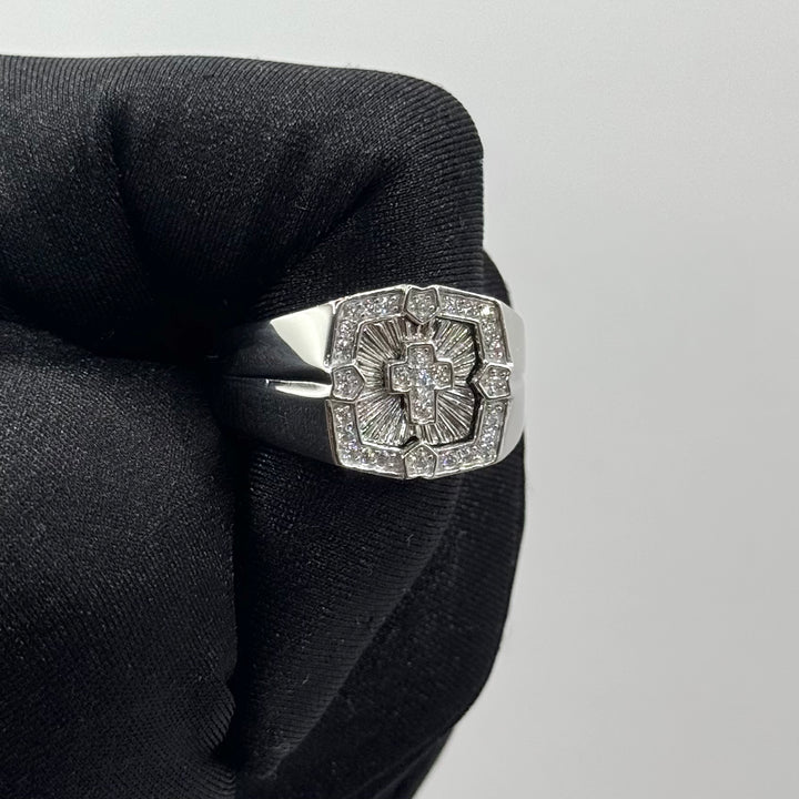 Detalle de cruz central con destellos en pavé, un símbolo de estilo y espiritualidad. Una pieza que combina tradición y modernidad, recordando que la fe también puede ser parte de tu flow diario.