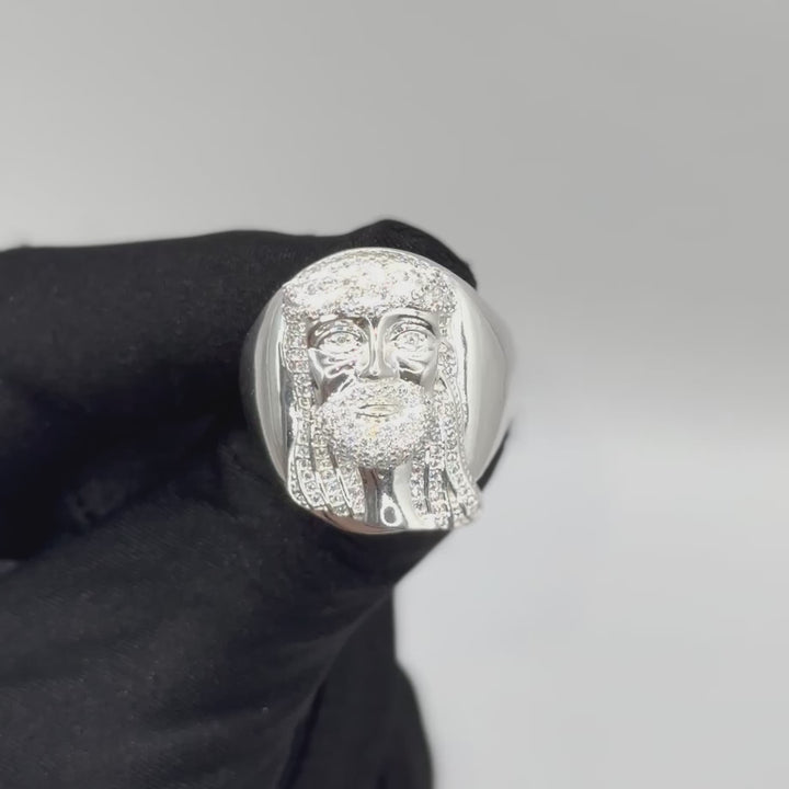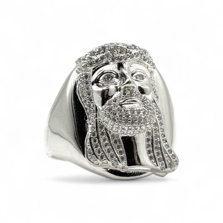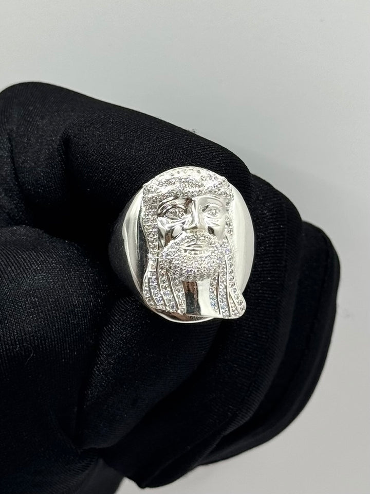 Representación en alto relieve del rostro de Cristo con detalles en pavé, una joya que combina espiritualidad con poder estético. Ideal para quienes desean portar fe y presencia en un mismo símbolo.