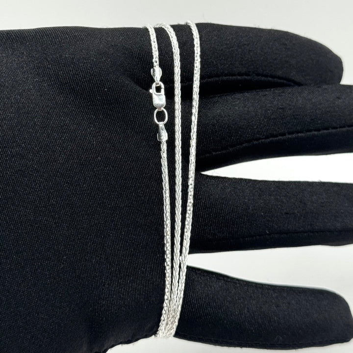 Cadena espiga de 2 mm, delicada y elegante, un diseño clásico que aporta sofisticación con sutileza. Perfecta para quienes buscan un detalle ligero y refinado.