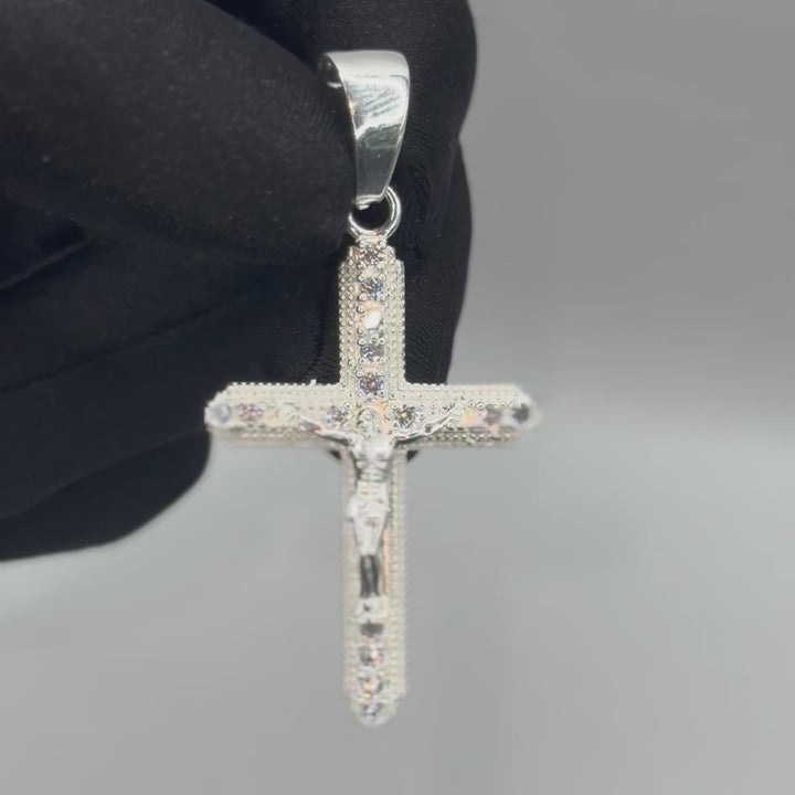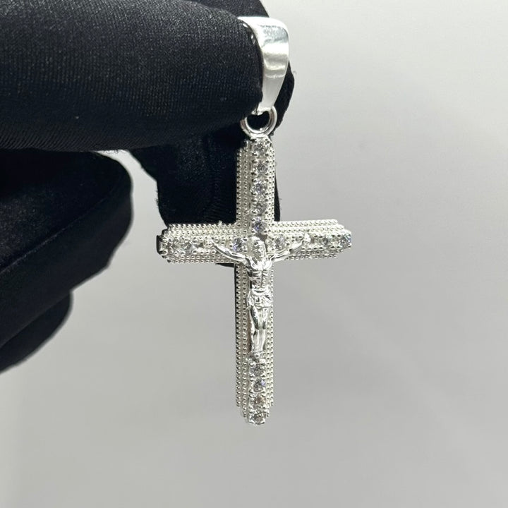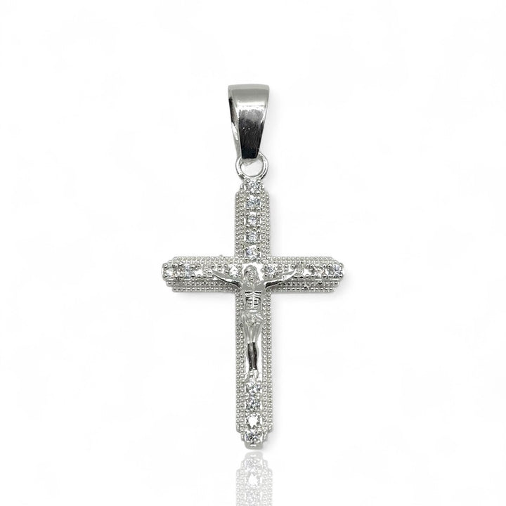 Versión mediana de la cruz tradicional con Cristo labrado, discreta y elegante, manteniendo toda la fuerza espiritual en un tamaño práctico.