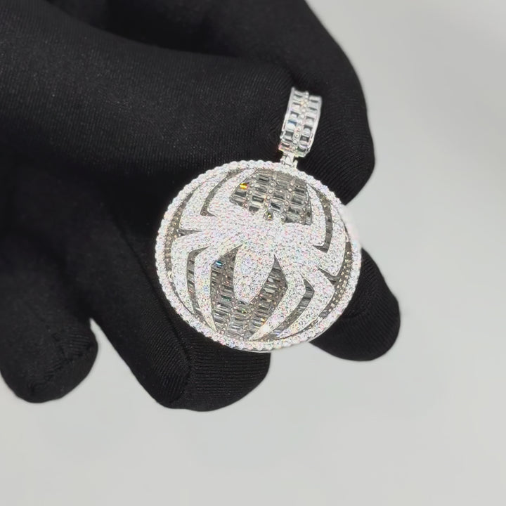 Colgante con diseño de araña totalmente cubierto de pavé, un statement piece audaz. Perfecto para quienes buscan originalidad y brillo sin comprometer la elegancia.
