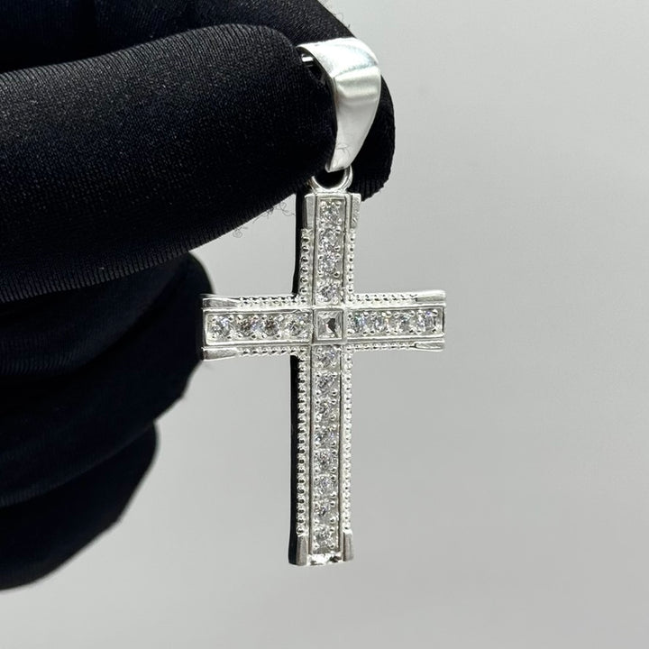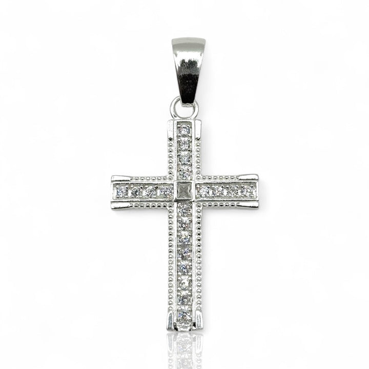 Dije de cruz recta con un delicado destello central, símbolo de pureza y claridad. Perfecta para quienes buscan un estilo minimalista con un toque espiritual.