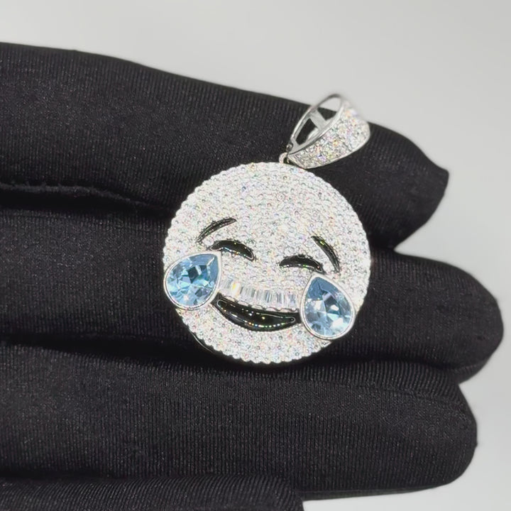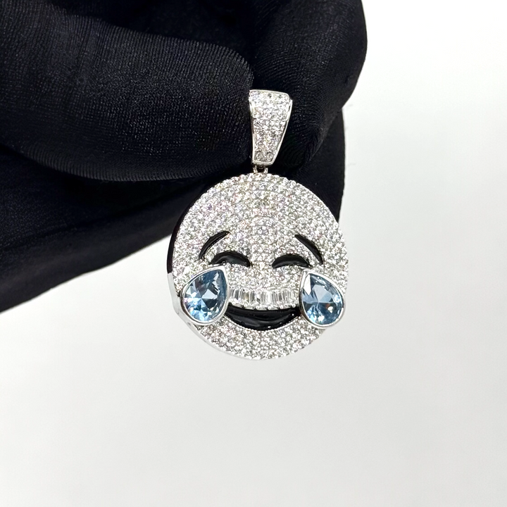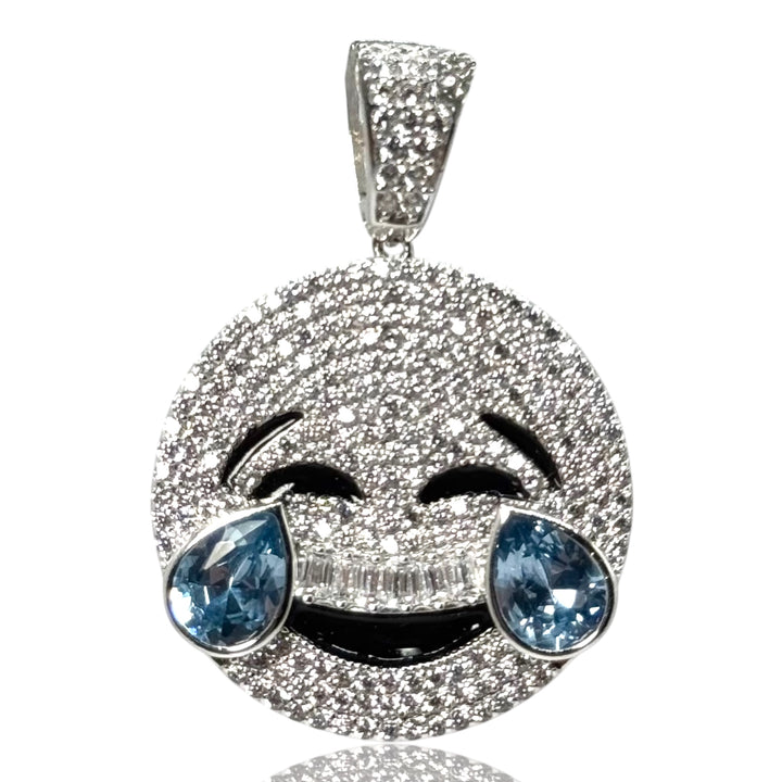 Carita sonriente cubierta de brillantes Full Ice, con lágrimas en tono azul. Una joya alegre y glamurosa que añade un toque de diversión y lujo.