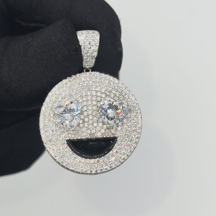 Carita sonriente cubierta de brillantes Full Ice, con lágrimas en tono azul. Una joya alegre y glamorosa que añade un toque de diversión y lujo.