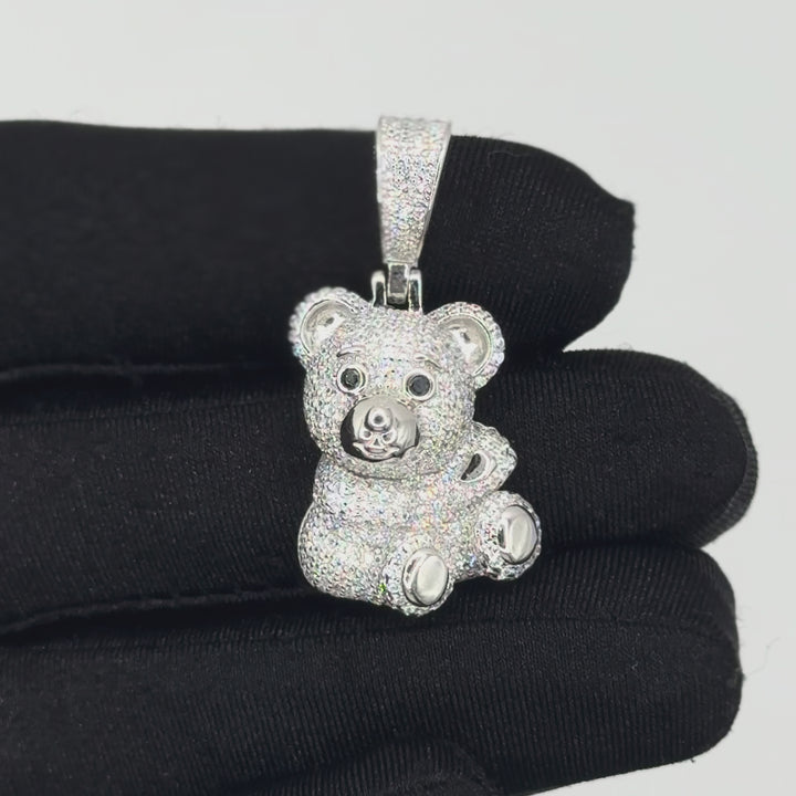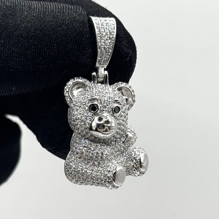 Dije en forma de oso totalmente engarzado en zirconias. Un diseño divertido y sofisticado que destaca por su brillo y detalle.