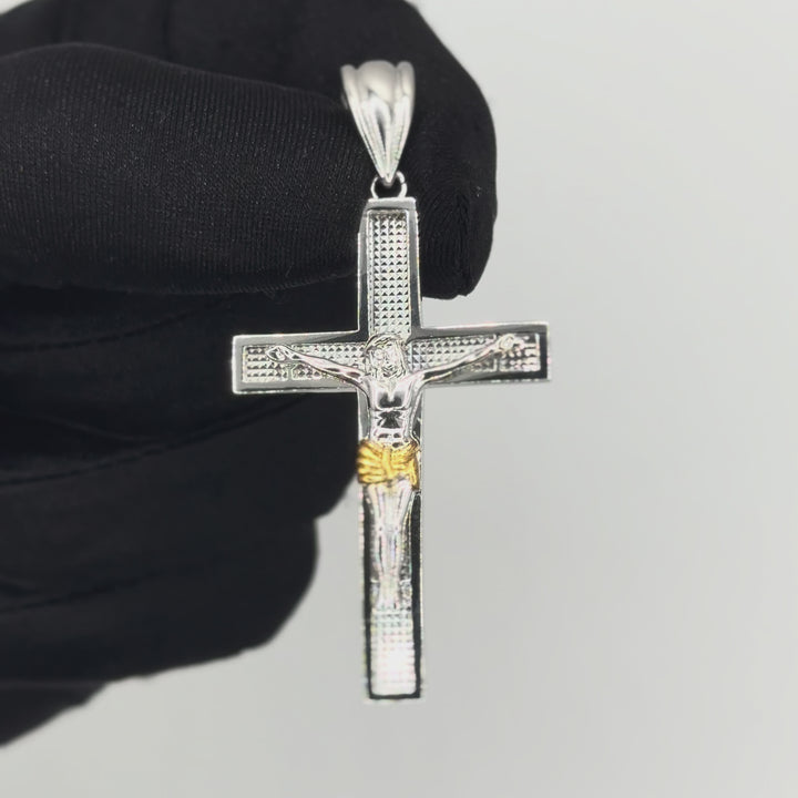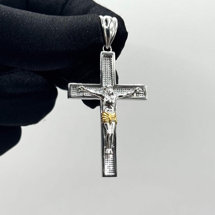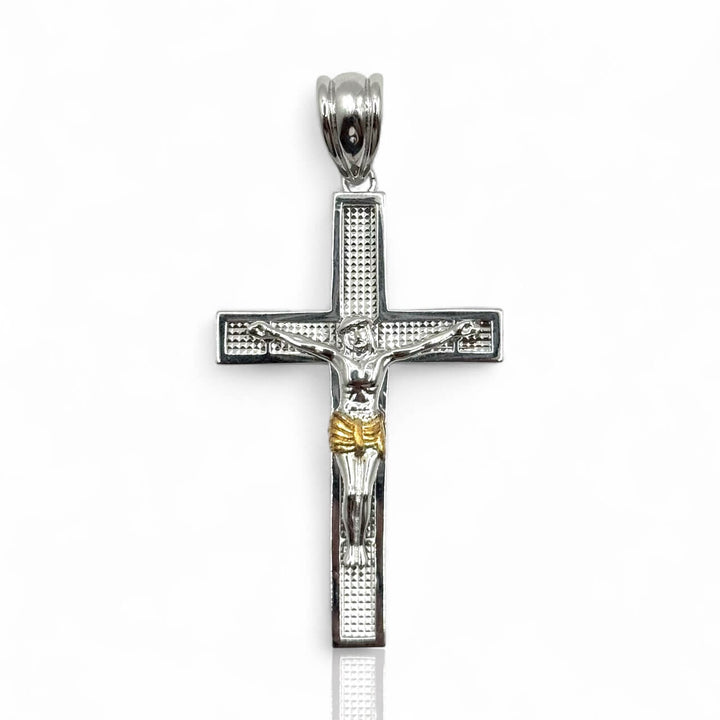 Cruz con detalles dorados en contraste brillante, representando fe, superación y elegancia contemporánea.