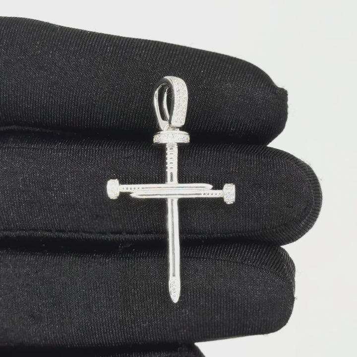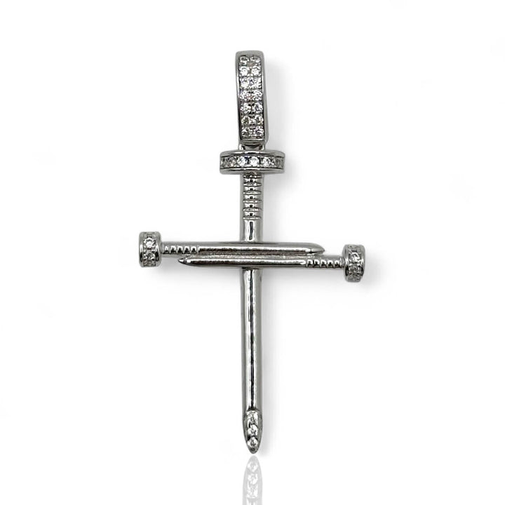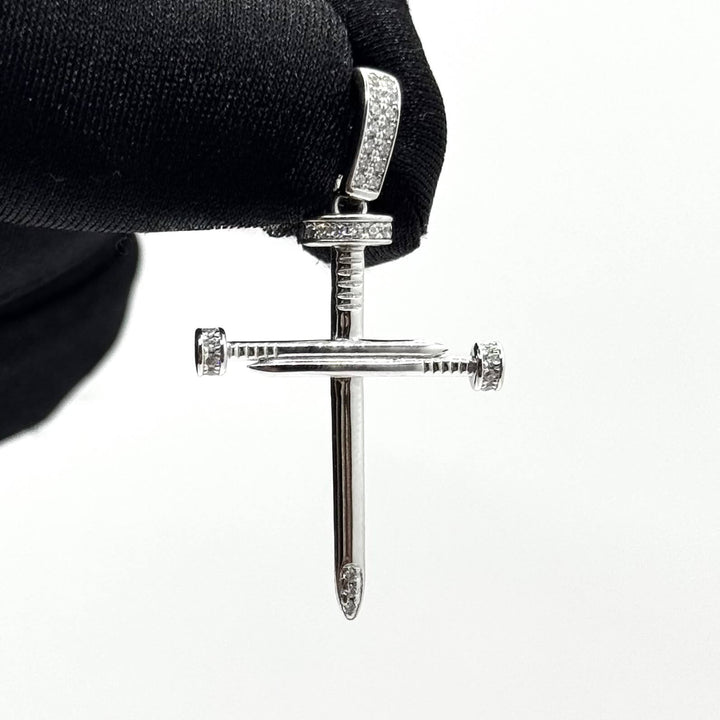 Cruz minimalista inspirada en los clavos de la pasión, símbolo de sacrificio y resiliencia. Su diseño sobrio irradia fuerza interior.