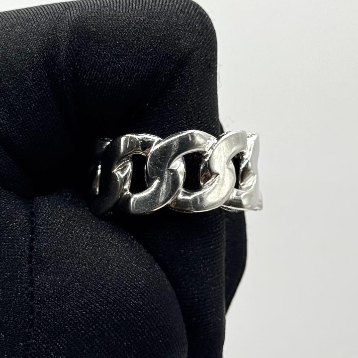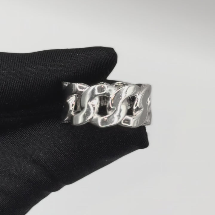 Anillo con eslabones tipo cubano en relieve y brillo intenso. Un diseño sólido que representa fuerza y sofisticación.