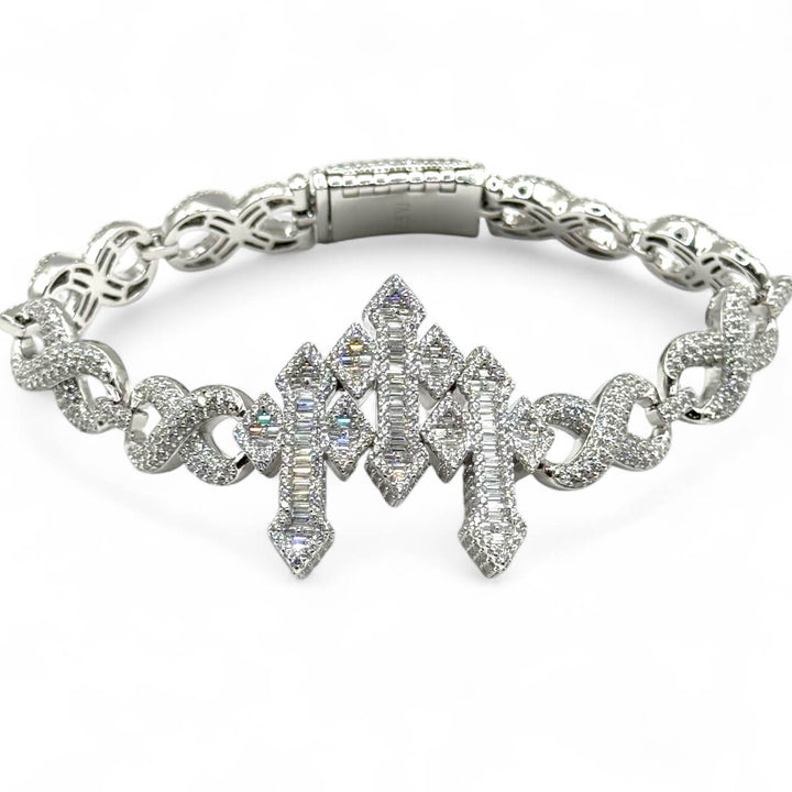Pulsera gruesa con eslabones cruzados y diseño sólido. Una pieza que proyecta elegancia, poder y lujo en cada detalle.