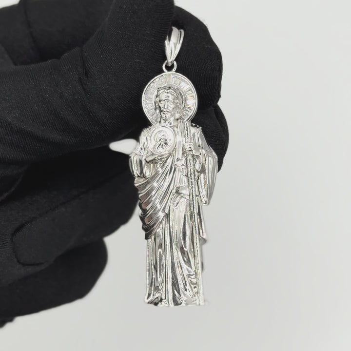 Representación detallada de San Judas Tadeo en versión XL, símbolo de fe y esperanza. Su acabado brillante refleja protección y devoción duradera.