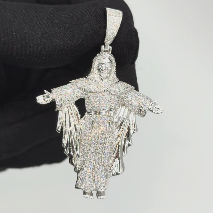 Colgante de Jesús Misericordioso cubierto de brillantes, estilo Full Ice. Esta pieza deslumbrante transmite devoción y lujo en igual medida.