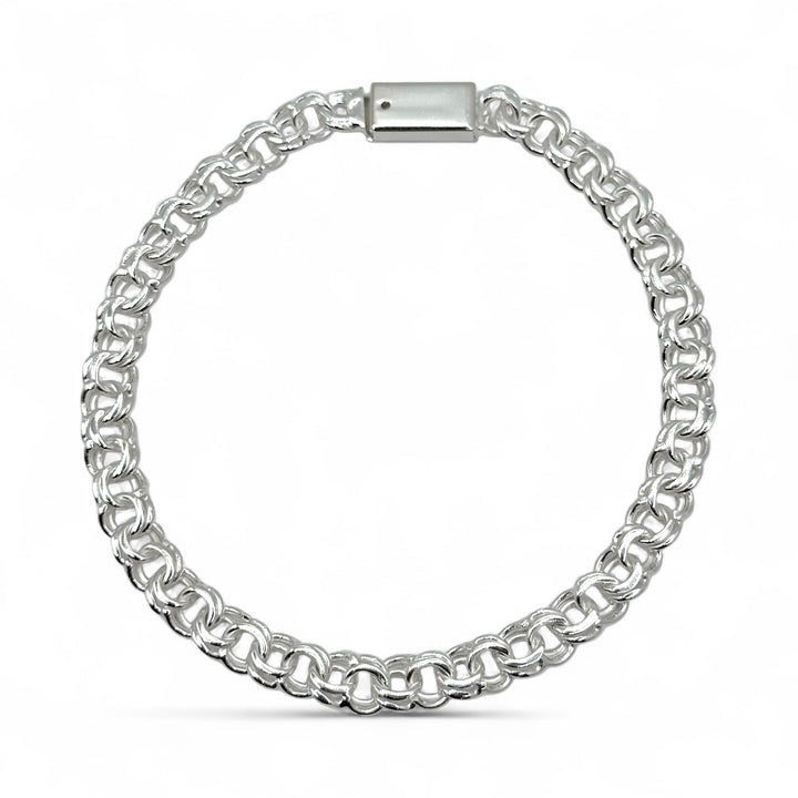 Eslabones chinos de 6 mm, de diseño intrincado y resistente. Una pulsera que fusiona tradición y modernidad, perfecta para destacar en cualquier ocasión.