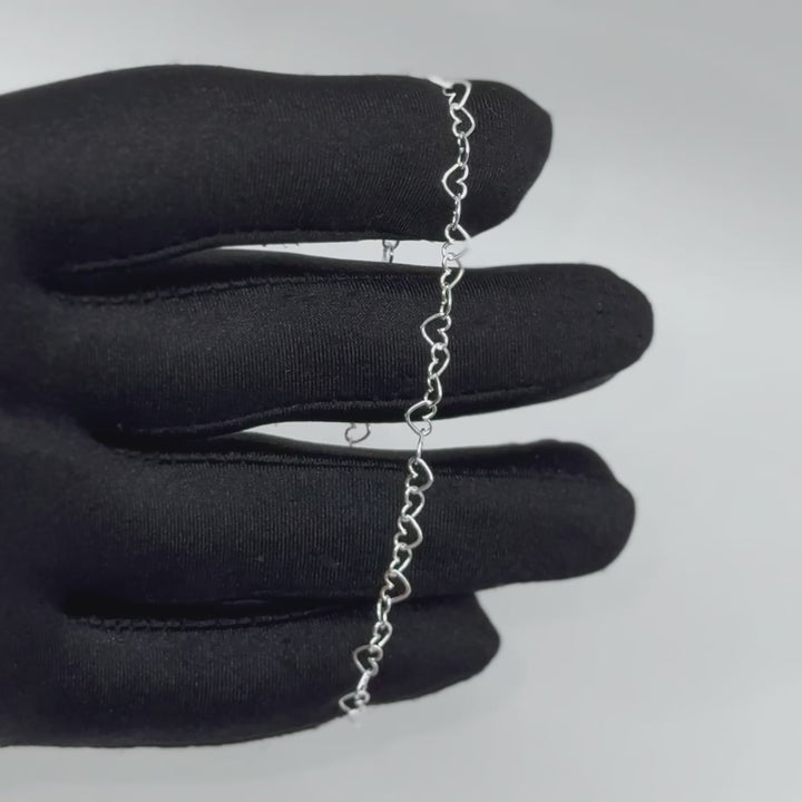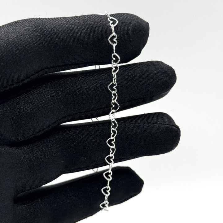 Pulsera delicada con eslabones en forma de corazón, dulce y romántica. Añade un toque de ternura y elegancia a tu muñeca, perfecta para regalar o llevar a diario.