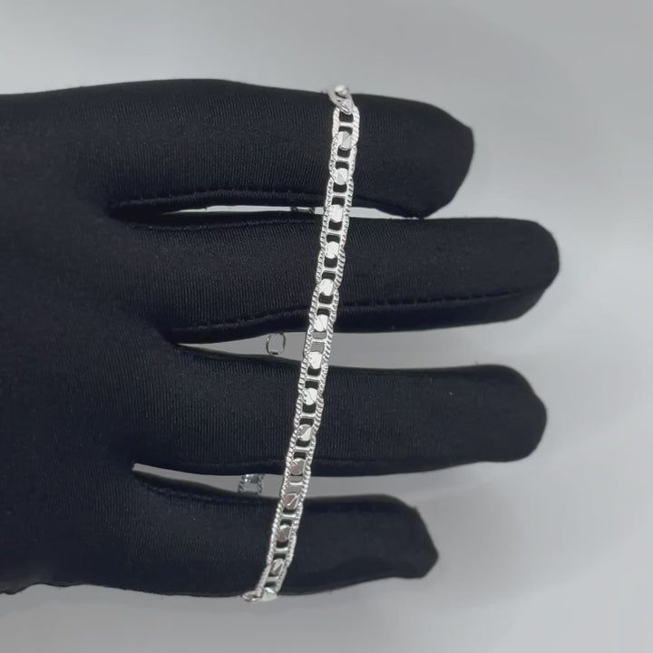 Eslabones de ancla martillados con acabado diamantado que brillan con un toque sofisticado. Una pieza que no pasa desapercibida, ideal para quienes buscan elegancia con giro distintivo.