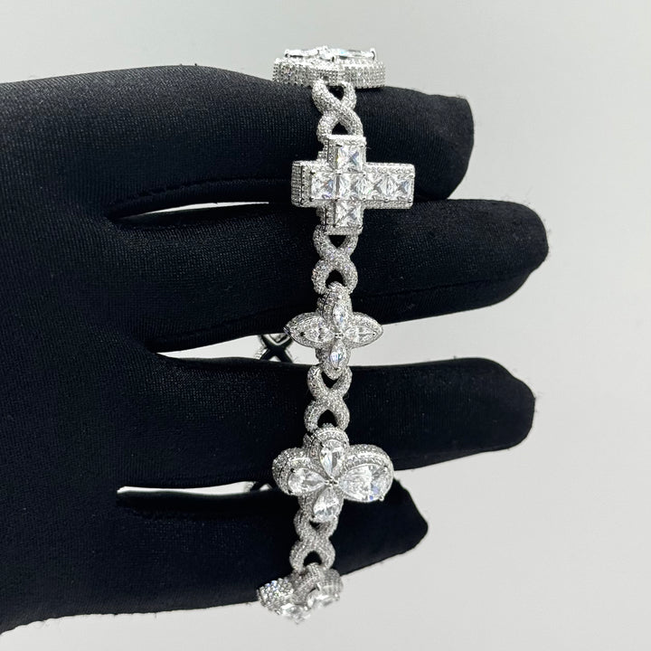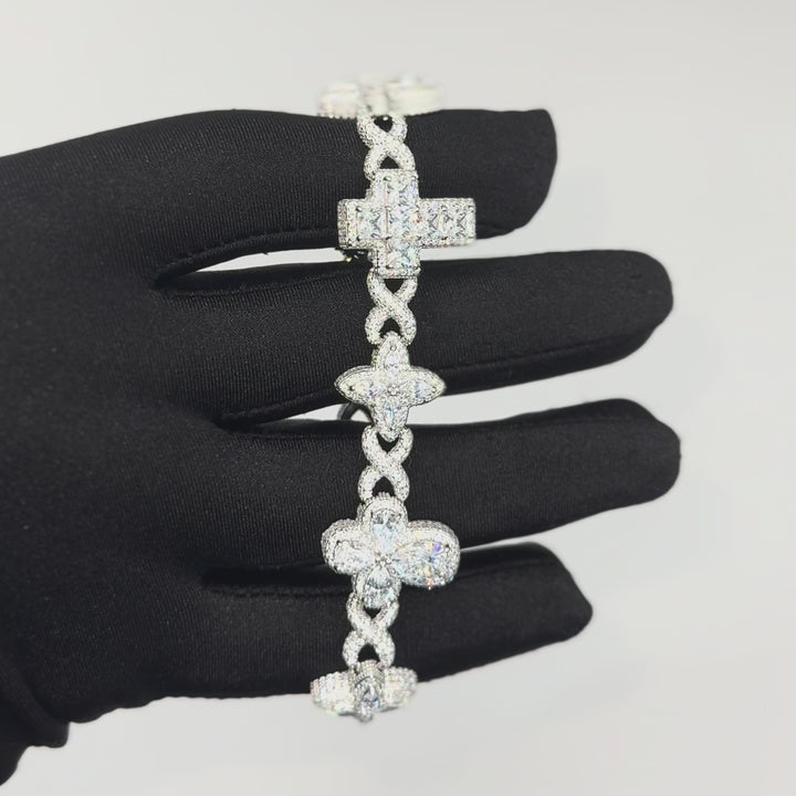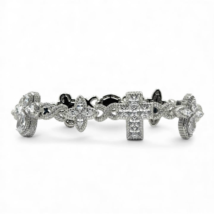 Pulso Cross Vintage en plata .925 importada. Pulso con pequeñas cruces en secuencia y eslabón fino. Ideal para quien busca una pieza llamativa con acabado de alto brillo. Peso aproximado: 42.5 g.