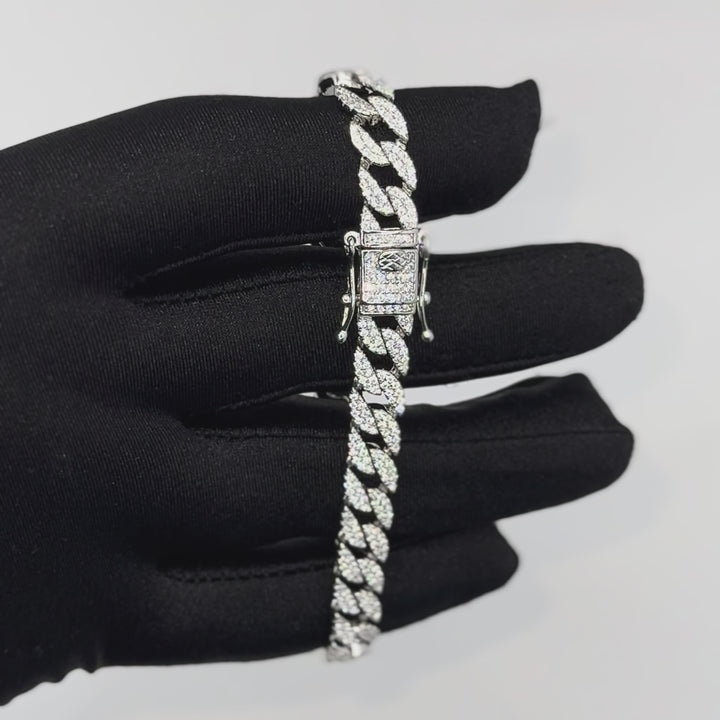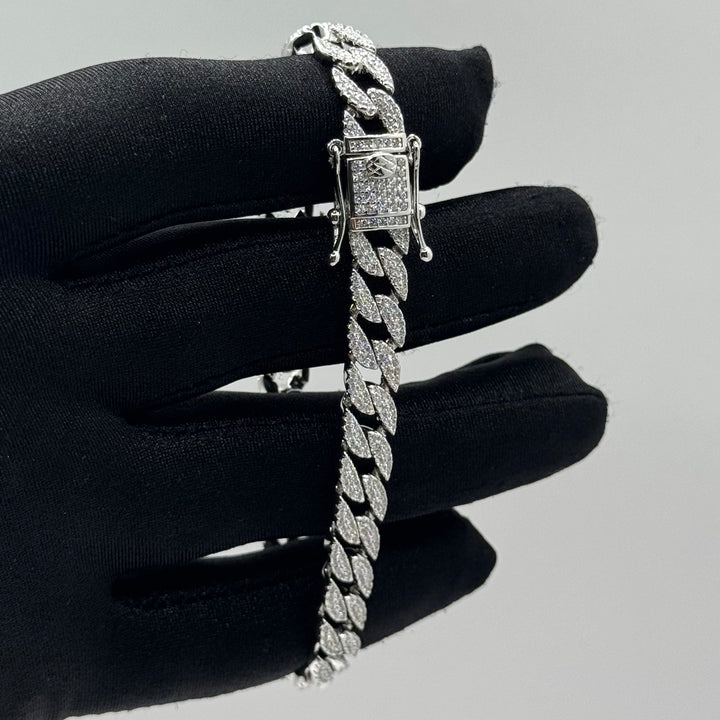Pulso Cuban Ice Lock en plata .925 importada. Pulso tipo cubana con eslabón ancho y broche central ice. Ideal para quien busca una pieza llamativa con acabado de alto brillo.