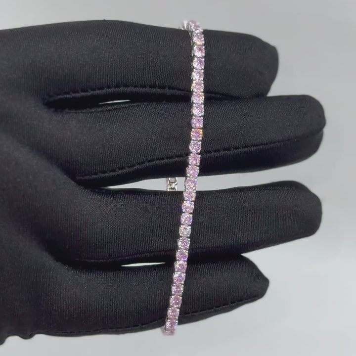Pulso tipo tennis con piedras rosas de 3 mm, delicado y colorido. Añade un toque femenino y suave a tu estilo con esta pieza encantadora.