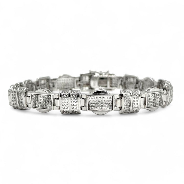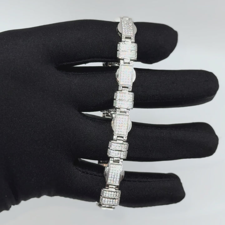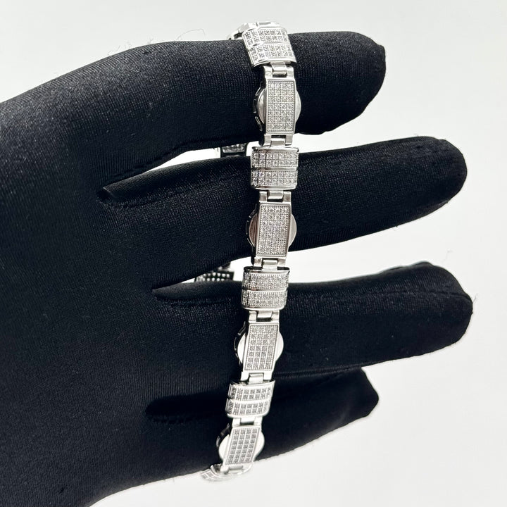 Pulso ensamblado en patrón de mosaico con detalles geométricos y textura única. Destaca tu originalidad y gusto por lo artístico con este diseño llamativo.