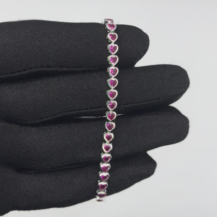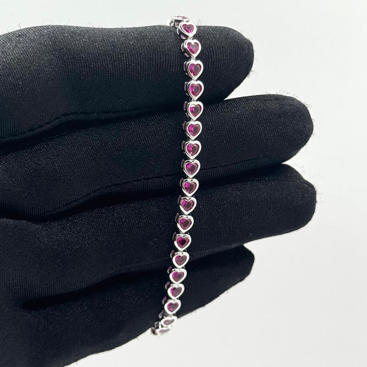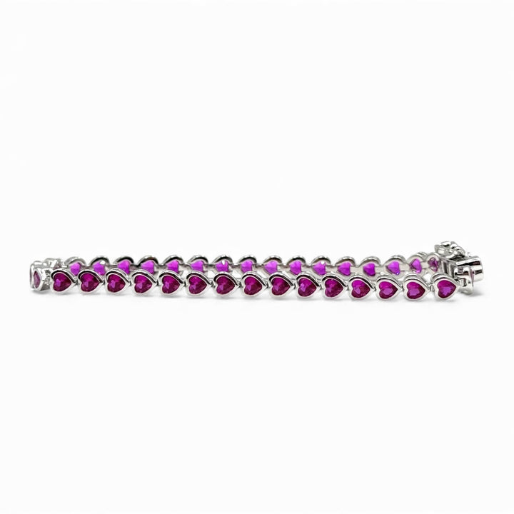 Pulso Fucsia Heart Tennis en plata .925 importada. Pulso tenis de corazones fucsia con presencia fuerte. Ideal para quien busca una pieza llamativa con acabado de alto brillo.