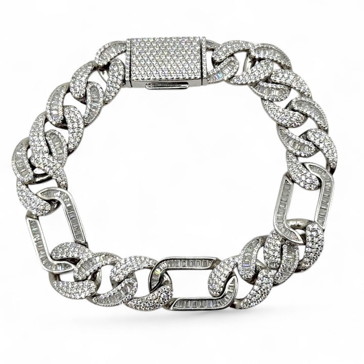 Versión de lujo del pulso cubano, con eslabones anchos de 13 mm y acabado impecable. Esta joya monumental proyecta confianza y estilo, ideal para un statement piece.