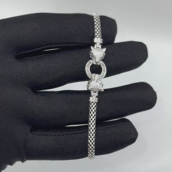 Pulso adornado con dos cabezas de pantera enfrentadas, símbolo de fuerza y elegancia. Ideal para quienes buscan un toque de poder y sofisticación en su estilo diario.