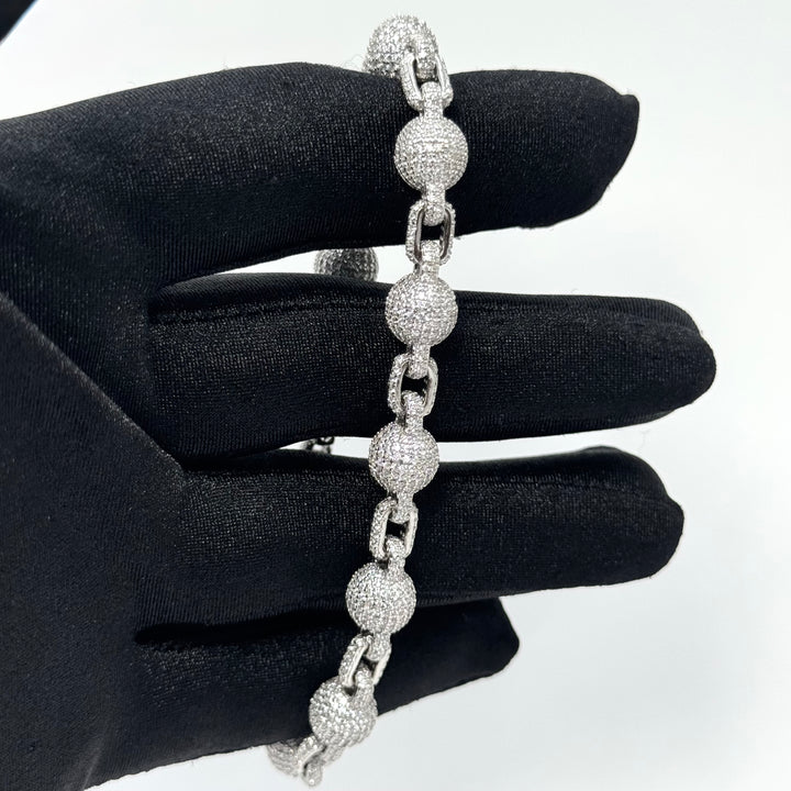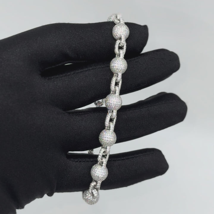 Pulso de esferas pavé, cada segmento cubierto con brillantes perfectamente engastados. Una pieza audaz que aporta luminosidad y distinción a tu colección.