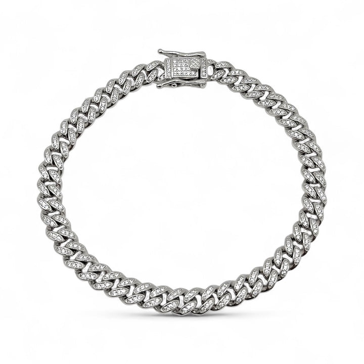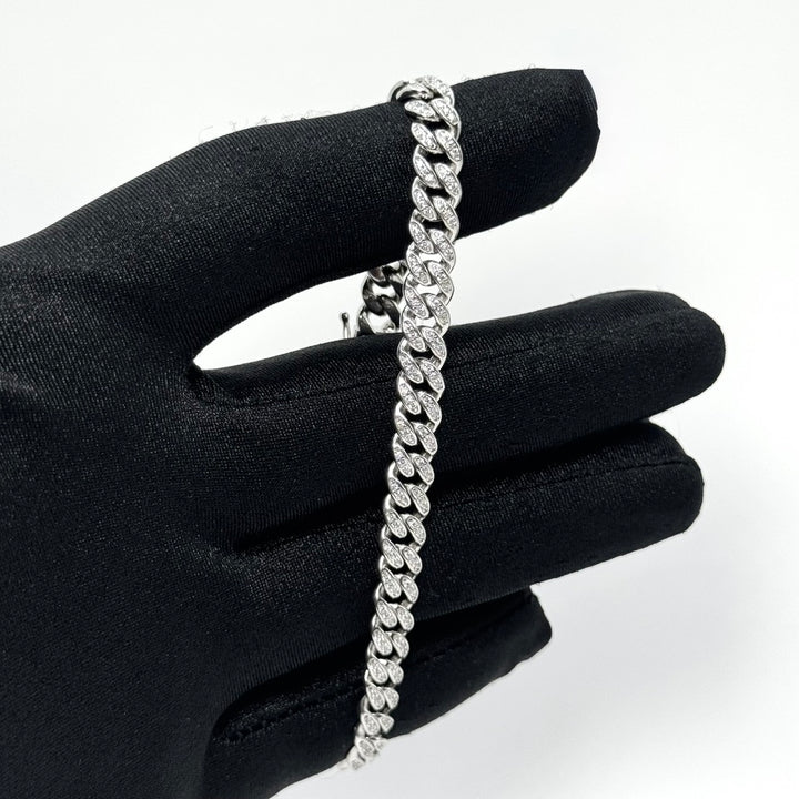 Pulso cubano con detalles pavé que añaden destellos a cada eslabón. Un clásico reinventado que aporta elegancia y sofisticación a tu muñeca en todo momento.