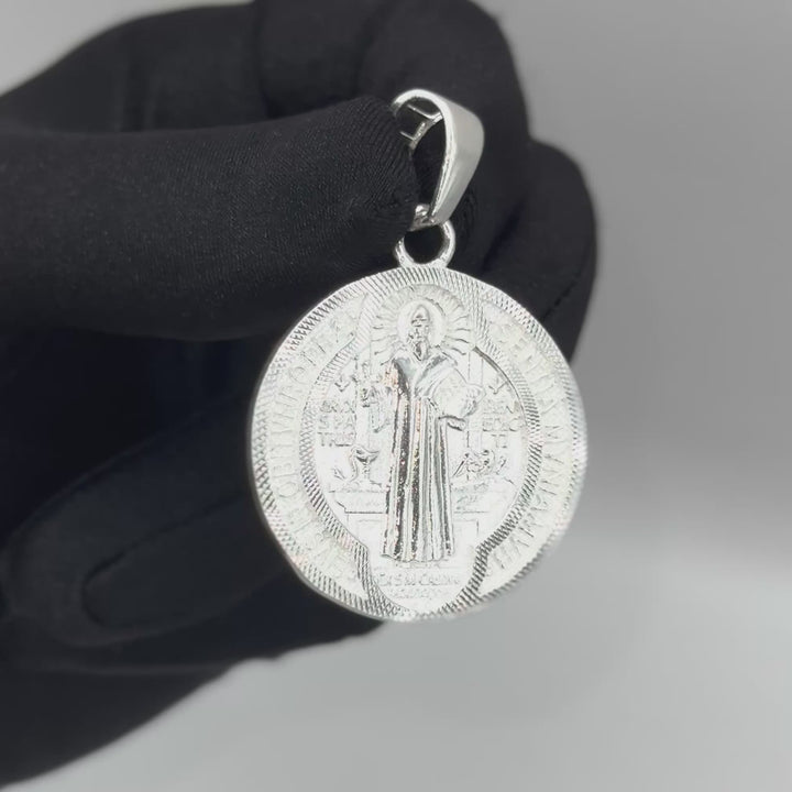 Medalla de gran tamaño con presencia impactante, símbolo de protección y fe sólida. Pensada para quienes desean una joya visible y de carácter imponente.
